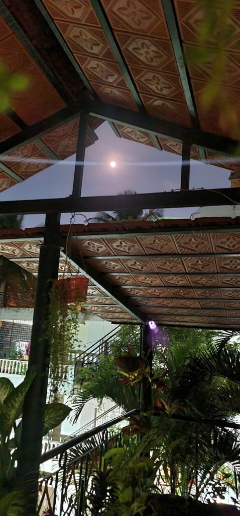 As I stepped out of my house tonight, I was greeted by a stunning sight: a huge, glowing orb looking directly into our terrace garden, and visible between the tiles ….Wow that was a sight to see. Below are a couple of photos…