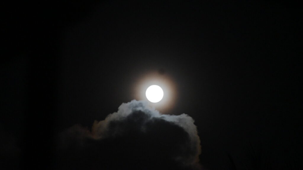 The full moon was so bright that it looked like a silver disk surrounded by a halo of light. I felt a surge of awe and gratitude as I gazed at it.